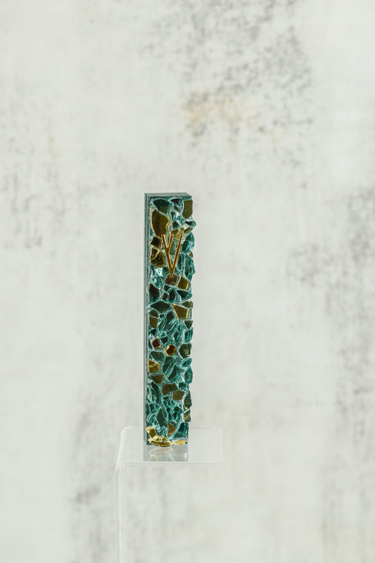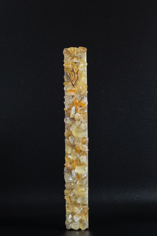 Each handmade mezuzah case, crafted over two weeks, is a unique creation. The artisan carefully selects and arranges resin, semi-precious stones, and pearls, ensuring no two cases are identical. Natural variations in the materials and the intricate handcrafting process result in distinct patterns and designs, making each mezuzah a one-of-a-kind piece of art.
