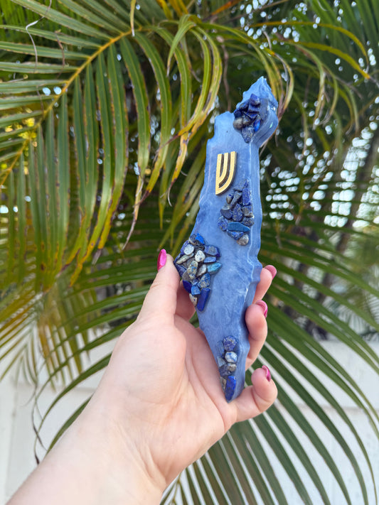 Celebrate your heritage with our new Israel-shaped Mezuzah cases, handcrafted with premium stones, fire glass, and crystals. These unique designs symbolize a deep connection to the Land of Israel, blending tradition with artistry.