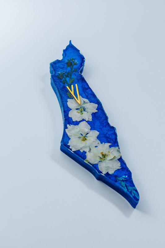 Israel-Shaped Mezuzah Case Blue-Gold