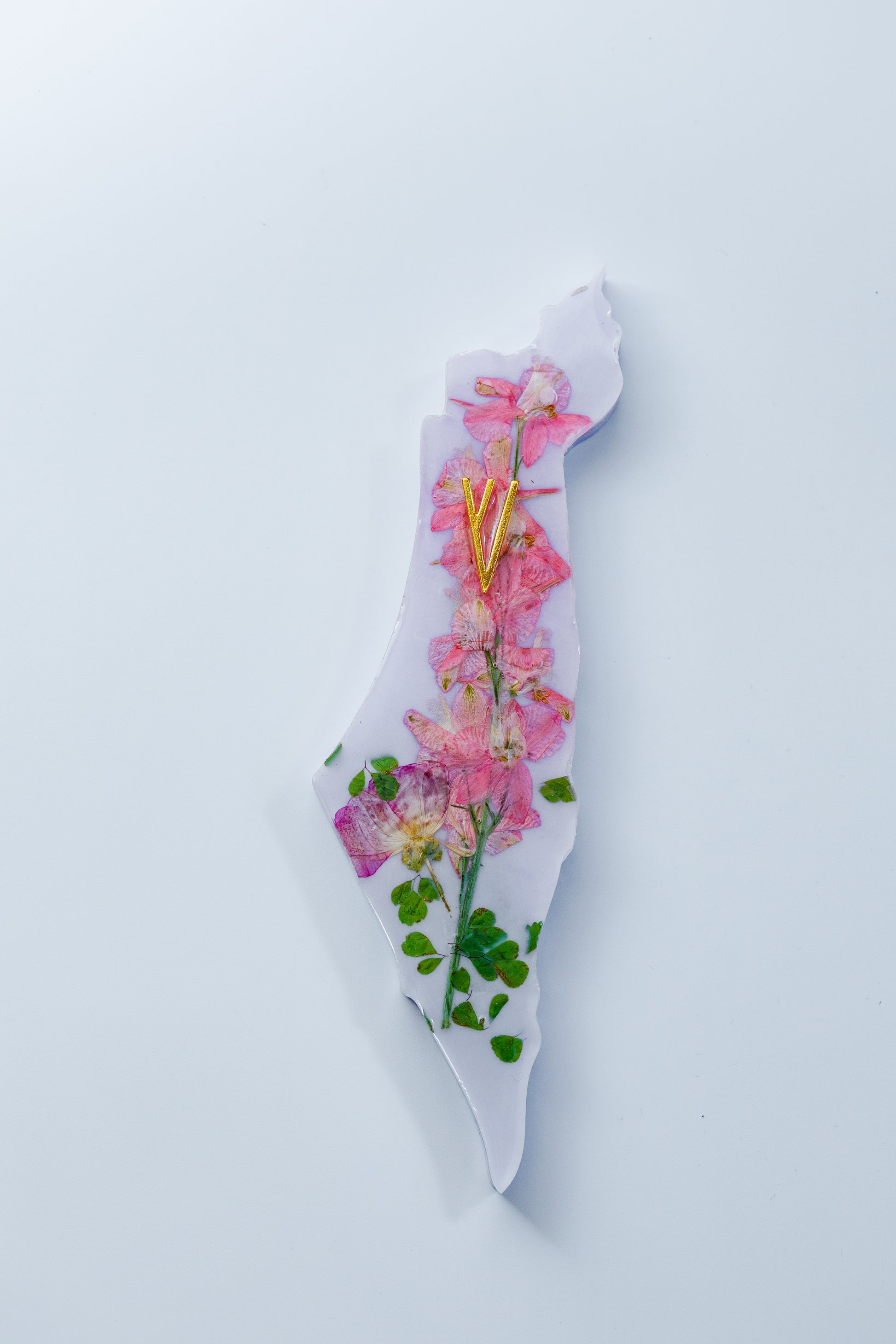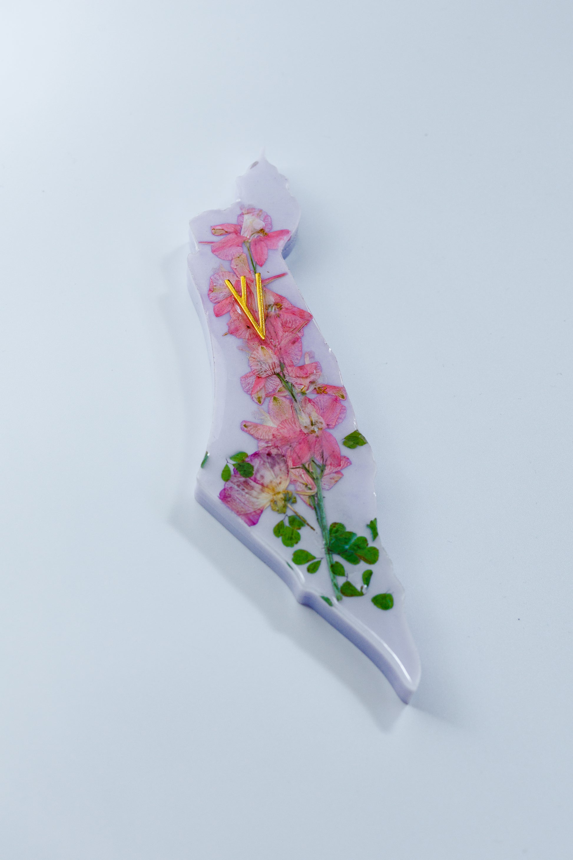 This stunning handcrafted Mezuzah case is designed in the unique shape of Israel, Made from high-quality resin with real dried flowers, this piece combines elegance, tradition, and meaning.